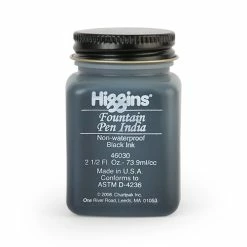 Higgins India Ink is non-toxic and non-flammable. It mixes well with other colorings to make dark tints and finishes darker. Unlike many black stains, Higgins ink is truly black—won’t leave a bluish tint.