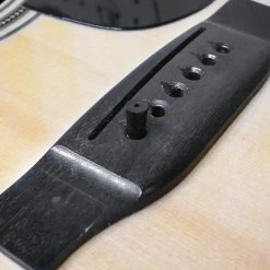 An acoustic bridge with a worn out bridge pin hole can be tough to fix. You can ream out the hole and use an oversize bridge pin, but this doesn’t look great and it’s not a realistic option for collectible instruments.