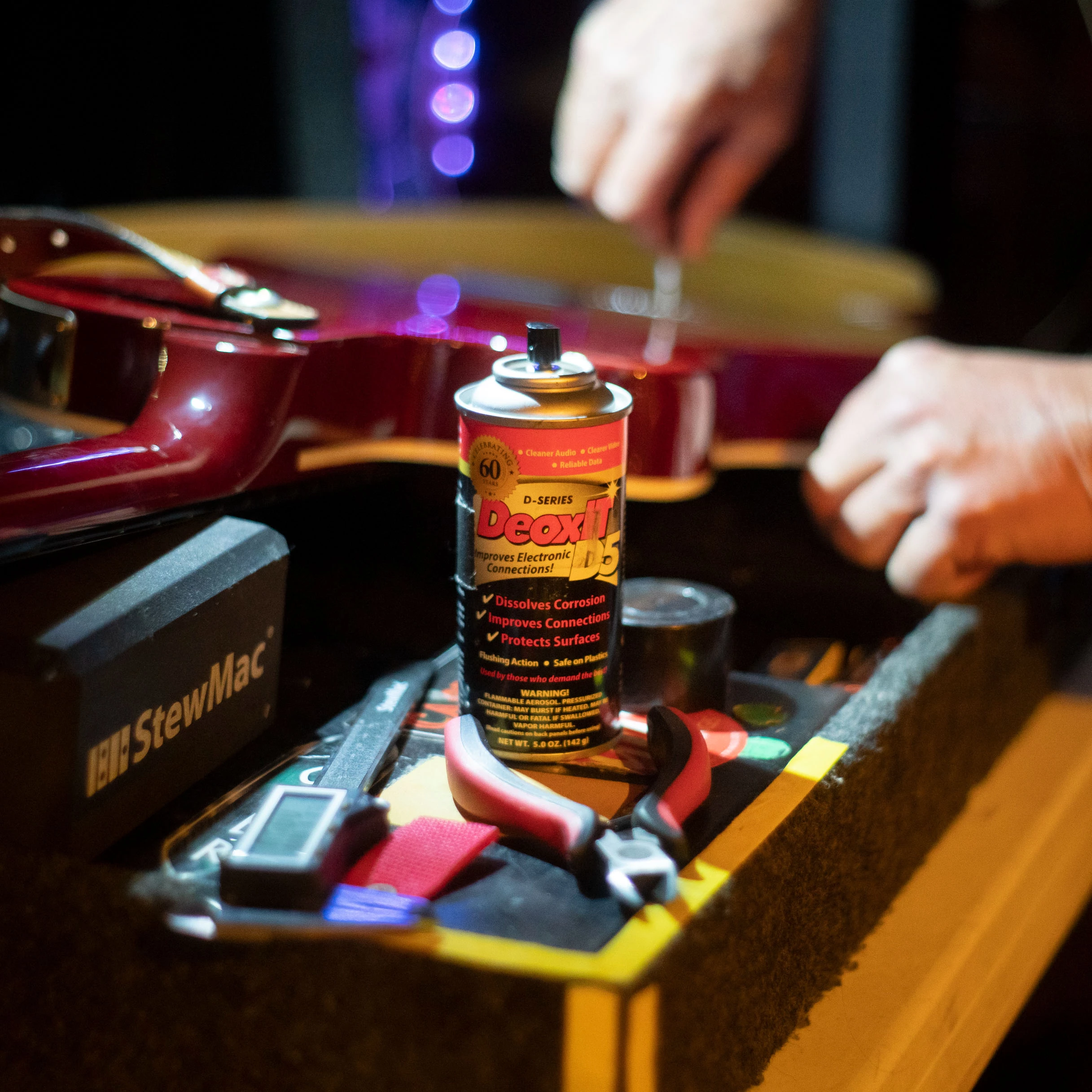 Cleans electrical contacts for better sound. The one-step spray for cleaning dirty, noisy control pots and switches in guitars and amps!