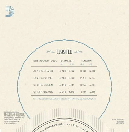 D’Addario EJ99TLG sets are designed for use with tenor ukuleles utilizing our exclusive Pro-Arté’ Carbon material. This is an all carbon material set and is optimized for ukuleles tuning to low G.