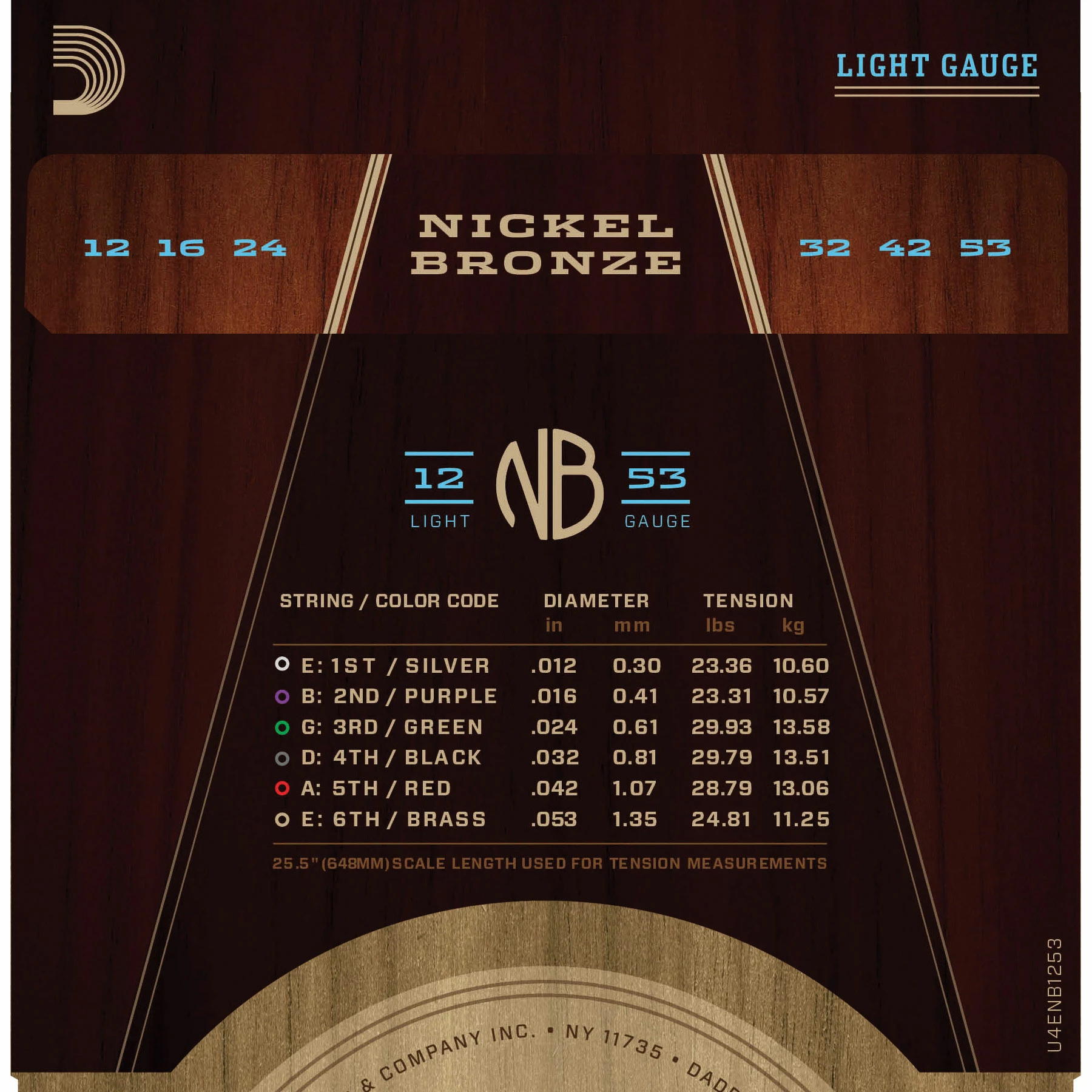 #10532 – D’Addario Nickel Bronze Acoustic Guitar Strings, Light (NB1253)