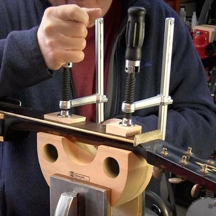 Clamp it! One of the Deluxe upgrades is a tip from Dan Erlewine: we added two holes to safely clamp a guitar neck extra-tight for serious repairs.