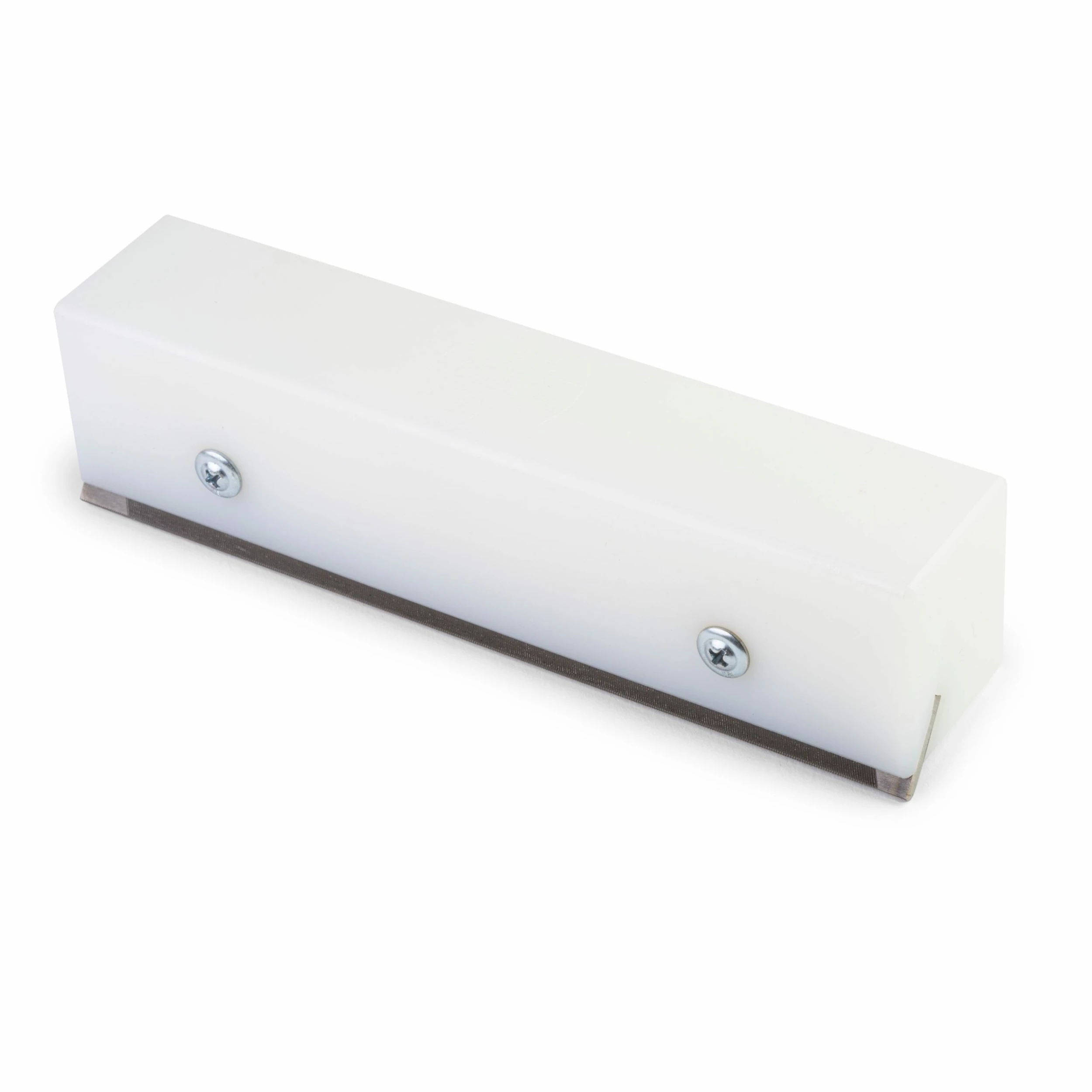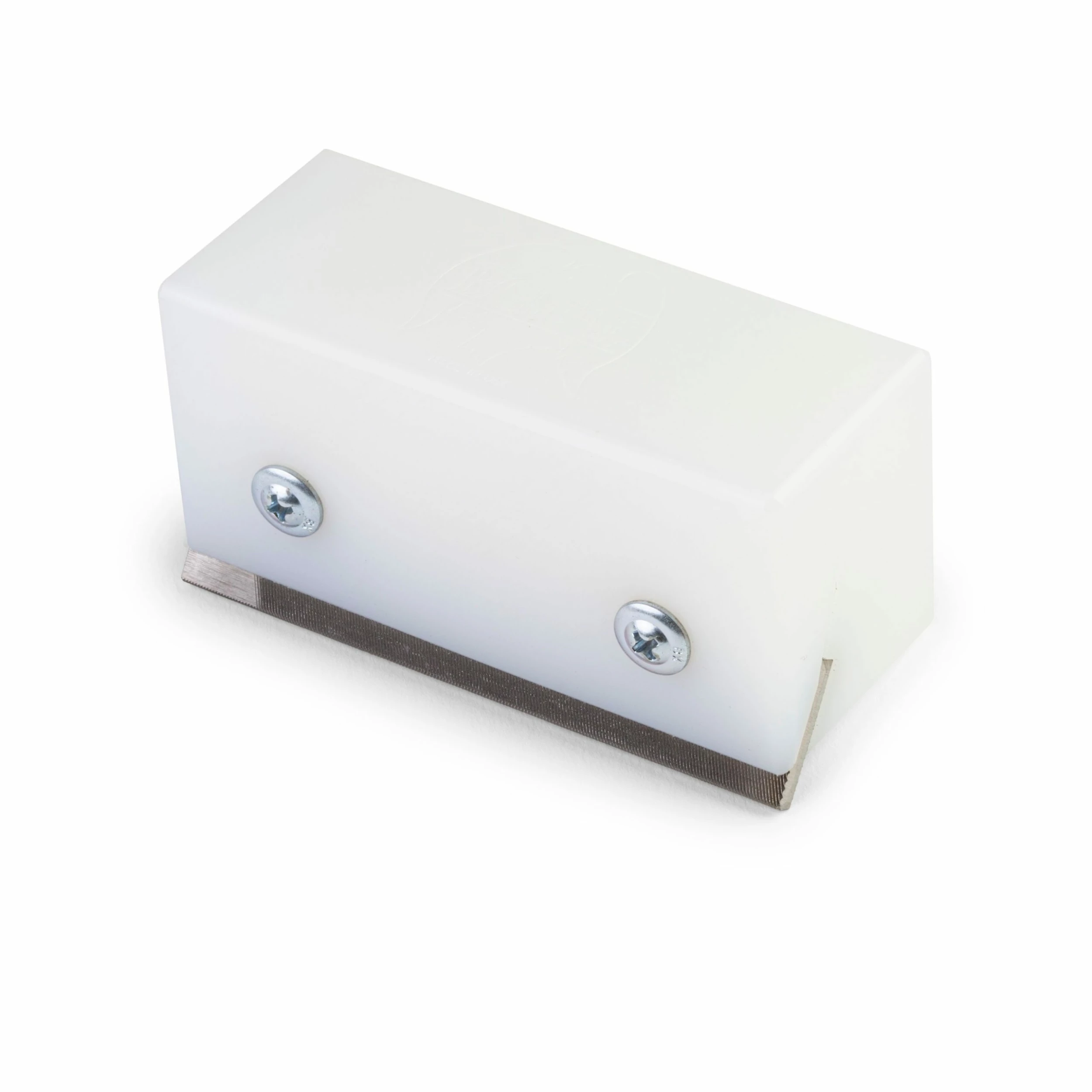 This 1-1/2″ x 1-3/4″ block (two lengths are available) holds a removable fine-tooth flat file at the proper 35° angle to bevel all the fret ends along the edge of the fingerboard. The block is made of low-friction material for smooth, easy filing. The 3-3/4″ model is for short fingerboards (mandolins, for example), and for spot-filing partial refrets. It’s also useful for working on used instruments with necks that aren’t straight.