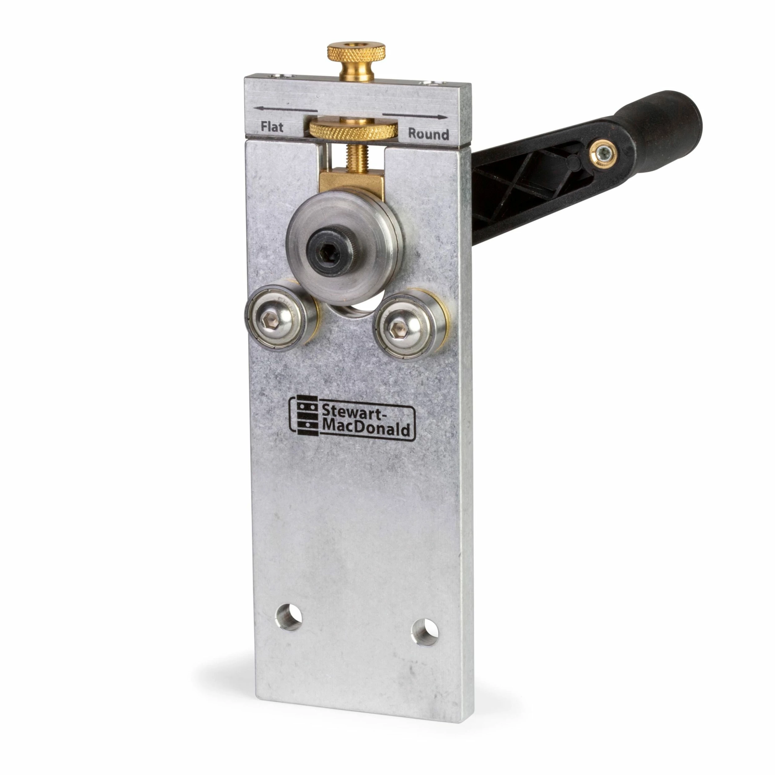The FretBender uses precision ball-bearing rollers. The heavy-duty aluminum column can be clamped in a vise, or use the pre-drilled bolt holes to mount it to your workbench.