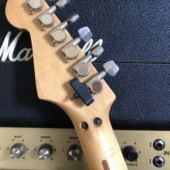 The HexHider has the perfect 3mm allen hex wrench on a small, easy to grip rubber handle. The secret is what’s inside the handle—a powerful Neodymium magnet that sticks right to your tuners! Just grab it, unlock/lock your nut or string locks, and you’re ready to rock again in seconds.