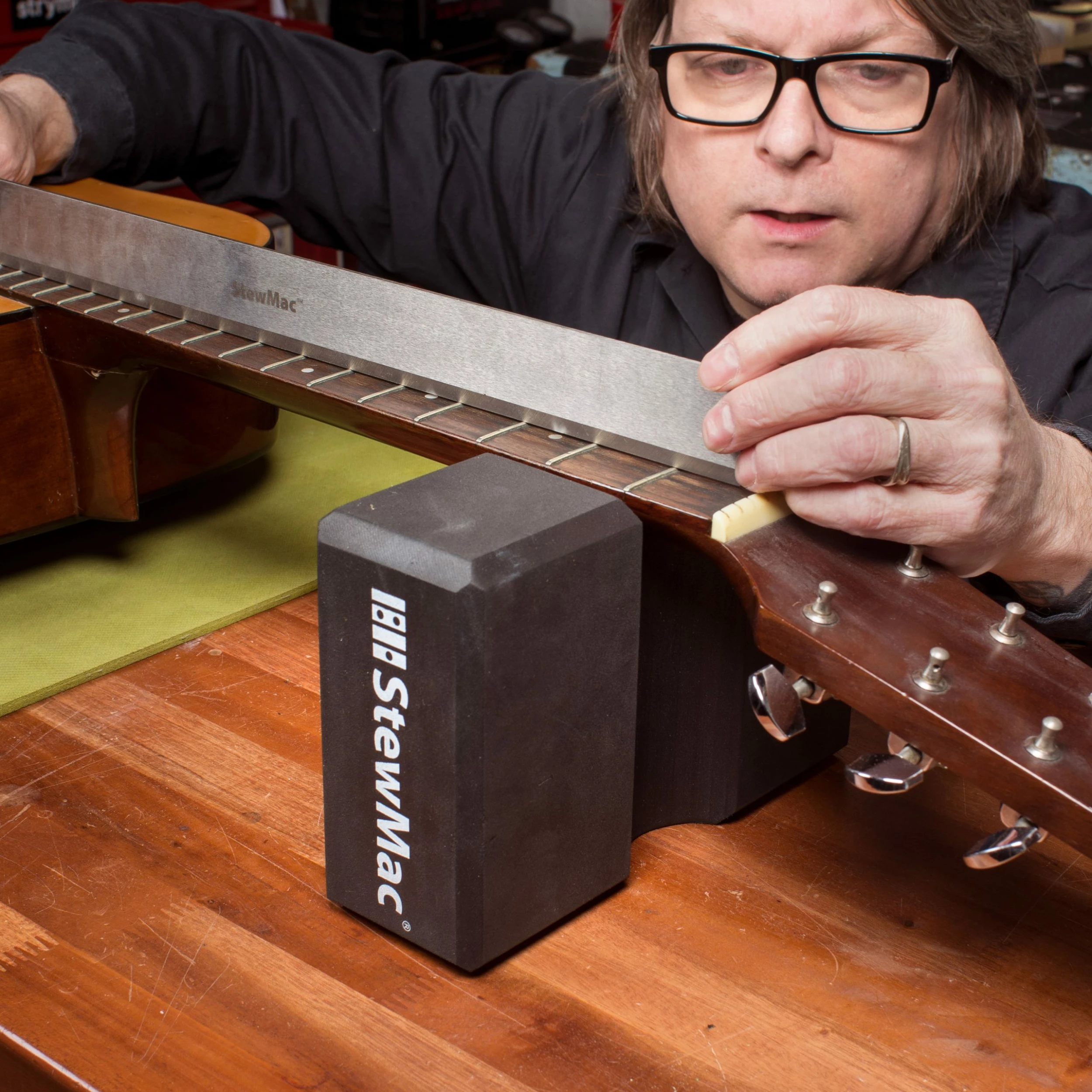 The Hi-Lo Featherweight Neck Rest is absolutely necessary for a good setup! The strong support makes it great when fine tuning frets and fret ends, working on a nut, conditioning the fretboard, and cleaning the gunk off of bridges and other hardware.