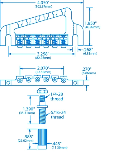 The Baby Grand is computer-machined from aluminum and has pre-notched saddles with individual intonation adjustment. Allen wrenches included. Chrome plated.