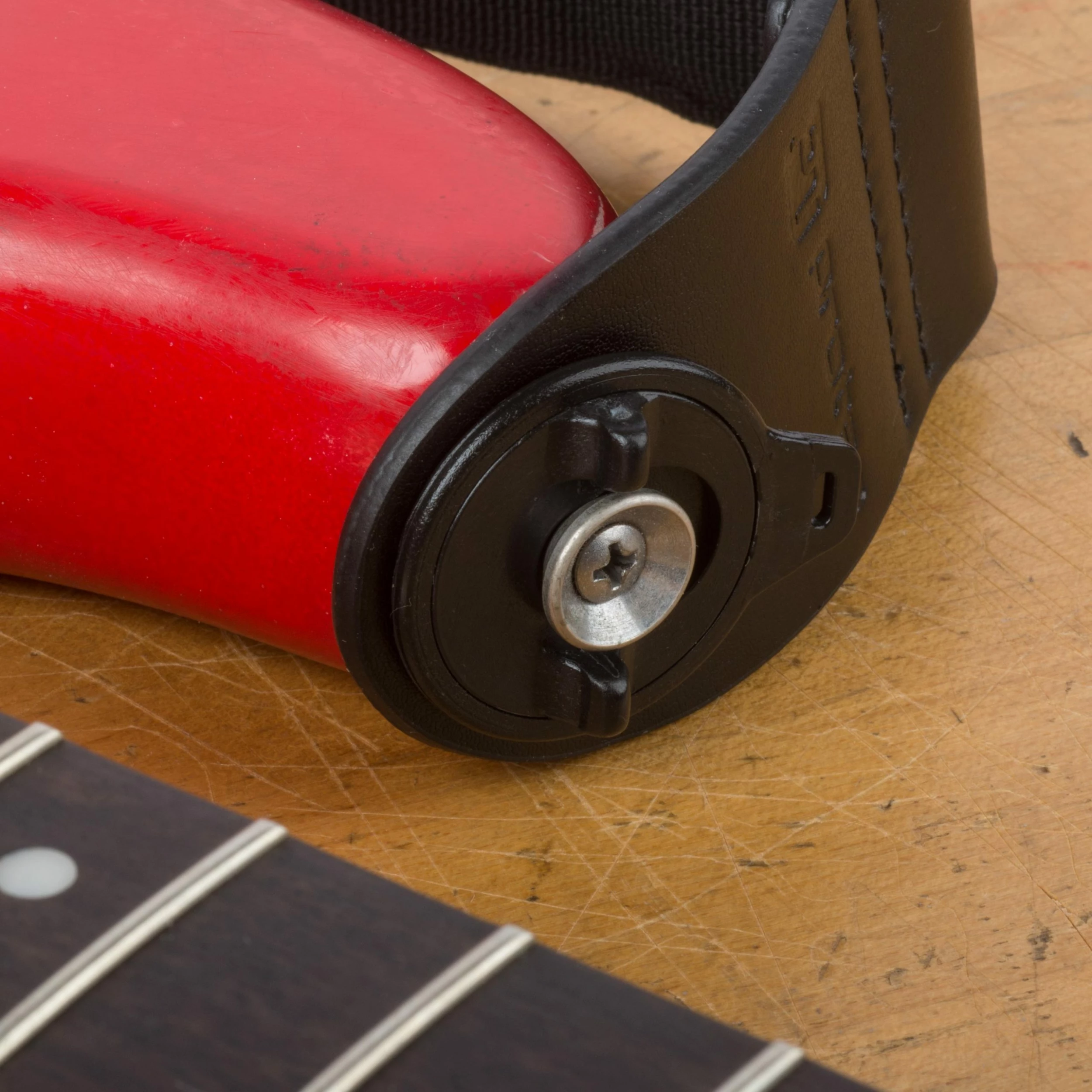 With the strap in place, fit the Lokstrap™ over the strap button. A half-turn locks it in place; another half-turn removes it. Set of 2.
