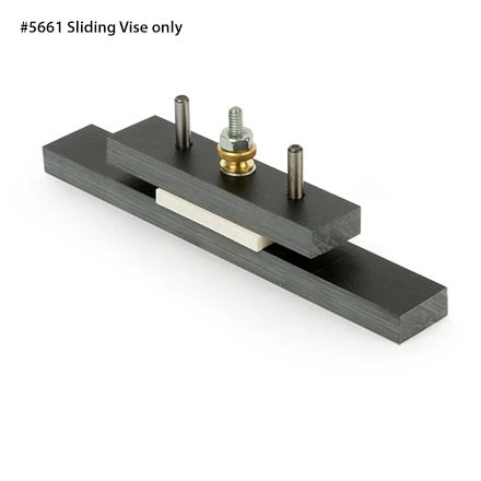 We highly recommend the optional Sliding Vise. It’s just right for squaring-up small parts such as nuts and saddles. It’s made to go with the Sanding Station – for easy indexing, one side of the jaws is 1/4″ deep and the other is 1/2″ deep. The long base permits a safe feed for thickness-sanding.