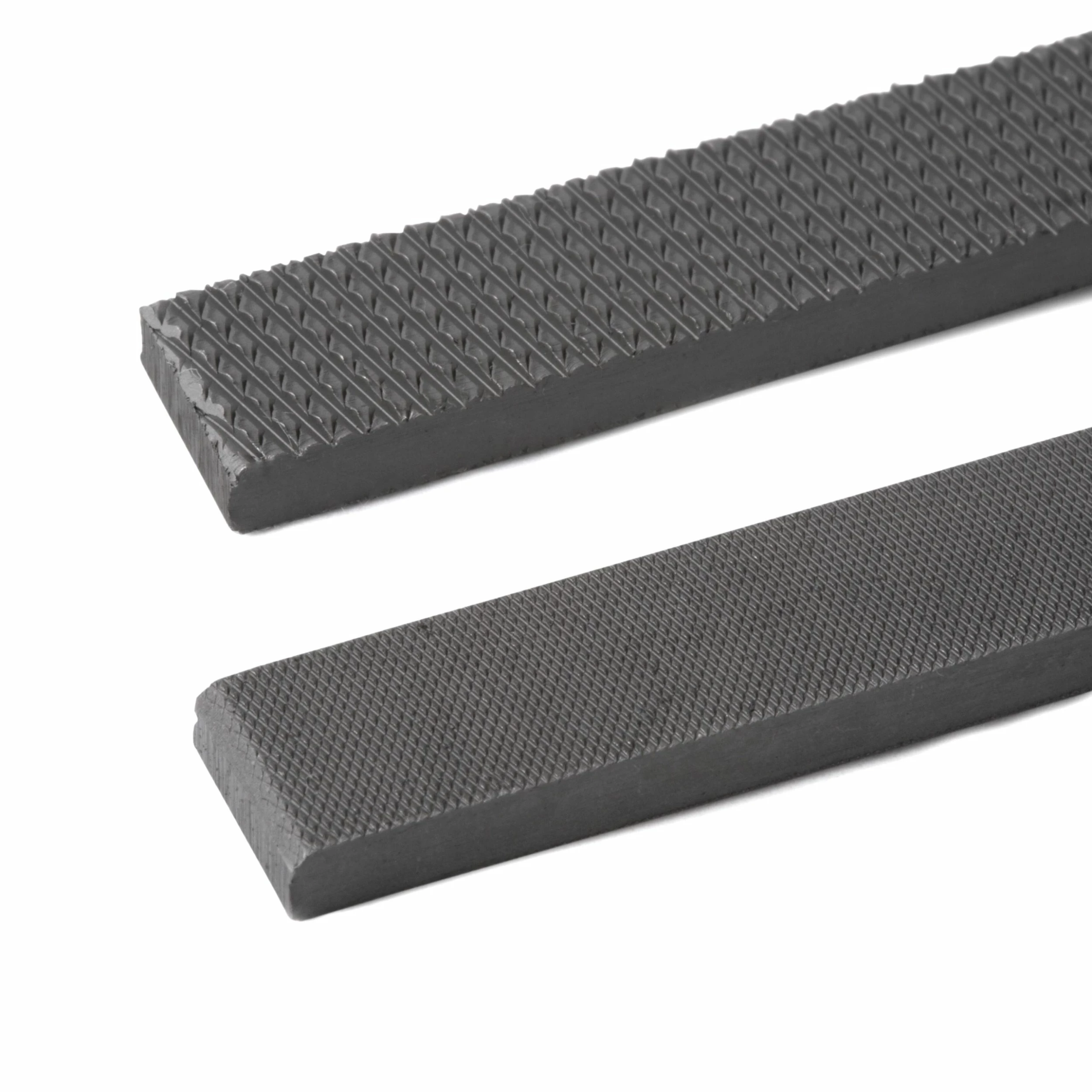 This pair of specialty files is ideal for roughing-in and fine-shaping the delicate contours of string nuts and acoustic bridge saddles. Using the files in combination, you can quickly refine a rough-cut nut to a smooth shape, ready for final polishing. The narrow cutting width makes it easier to round the top of a nut or bridge saddle more smoothly and accurately.