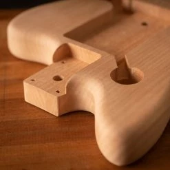 The neck is matched to each body for a solid connection and easy installation. The routing is clean and the bridge holes are drilled in the perfect location. With minimal prep you’re ready to apply the finish.
