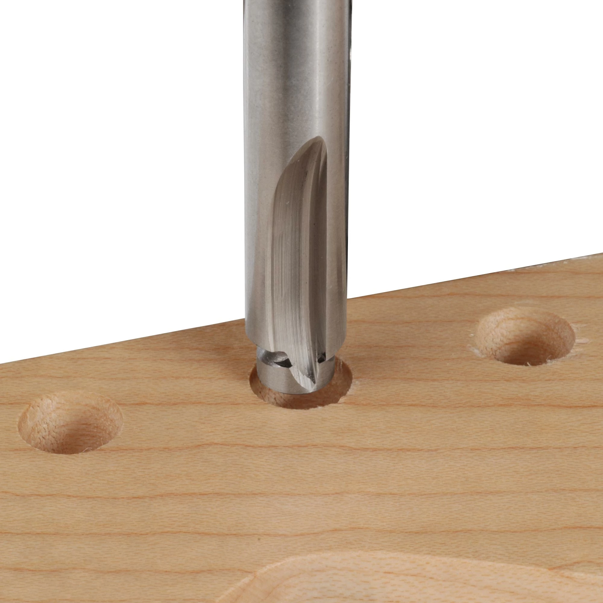 Counterbores the back of a 5/16″-diameter peghole to fit Grover and Gotoh sealed gear housing.