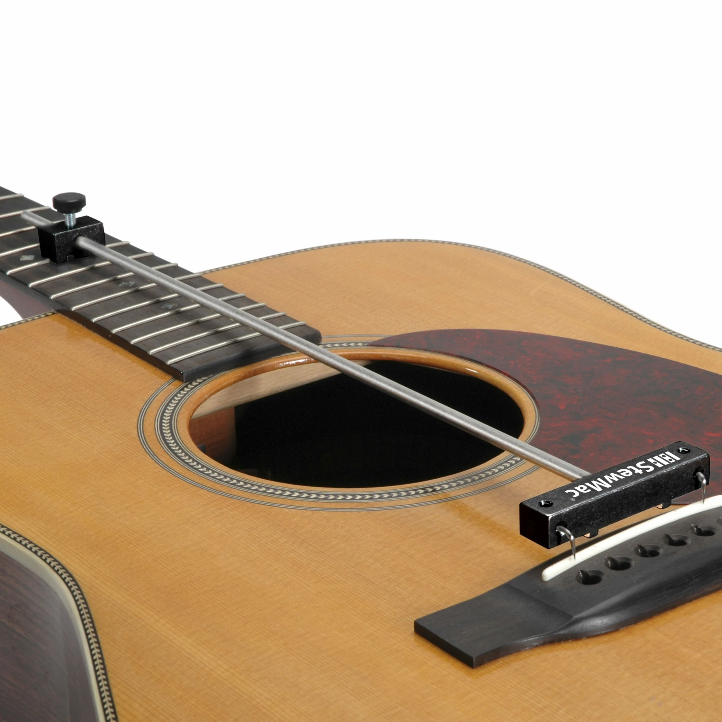 A real time saver! This unique aluminum/steel tool quickly and accurately finds the correct location for an acoustic guitar saddle slot.