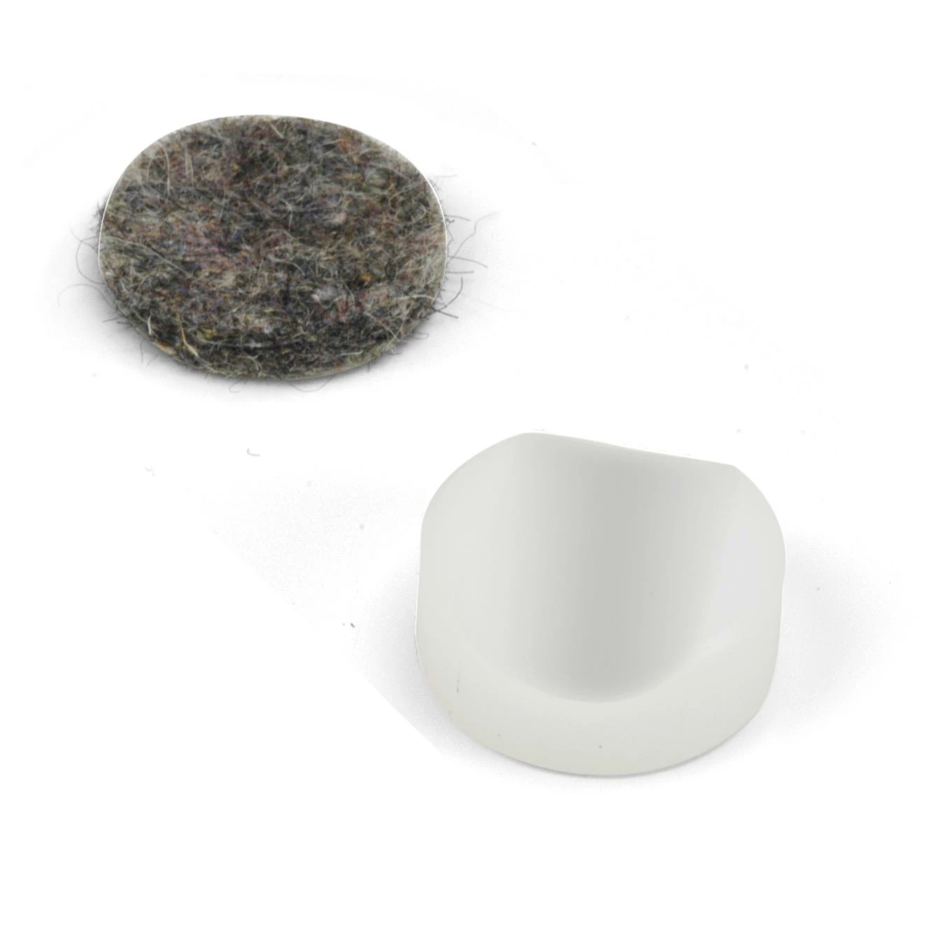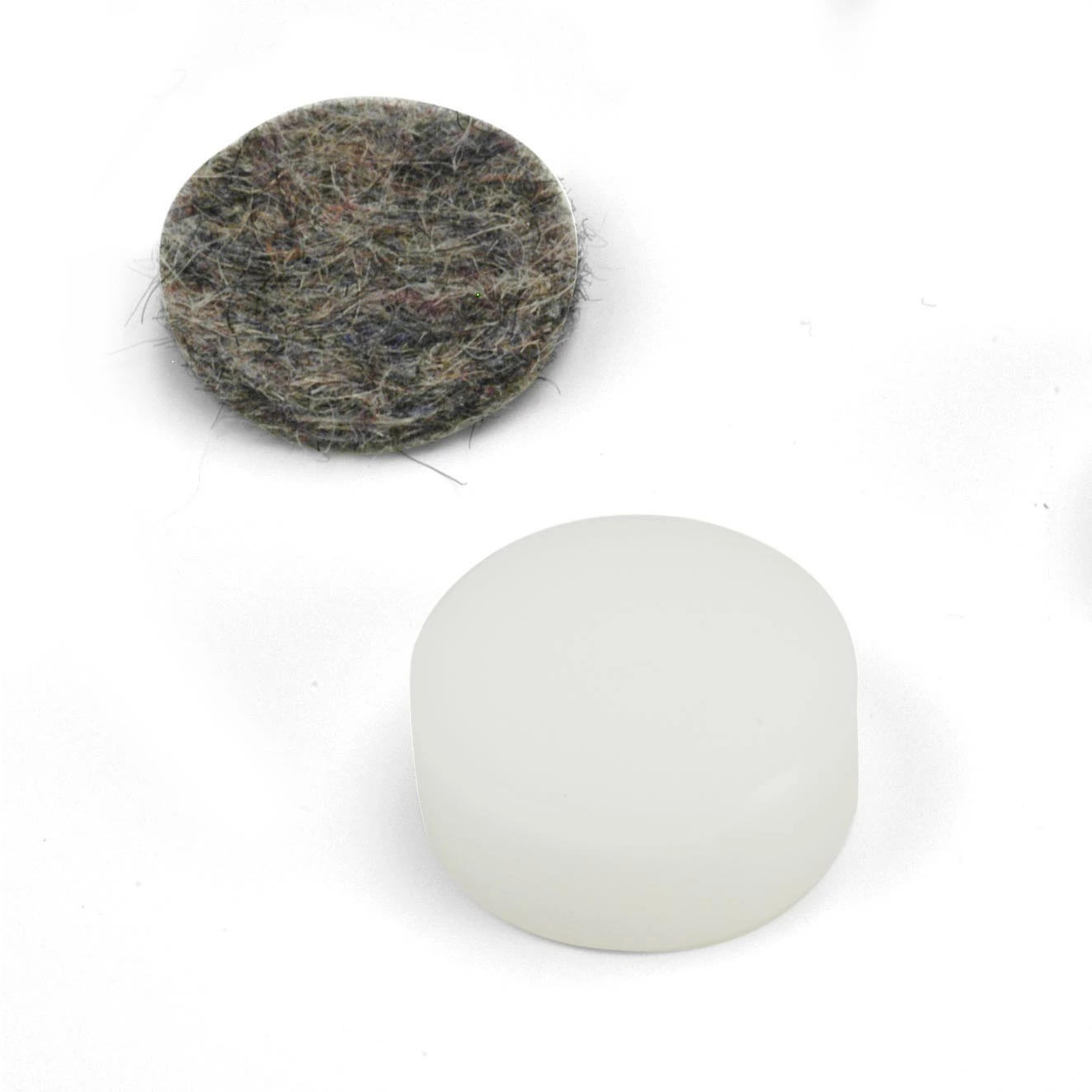 Each 3/8″ x 7/8″-diameter caul includes a thick felt disk that can be glued on to help prevent wood dents. We recommend readily available Shoe Goo® clear adhesive for attaching the felt to these cauls.