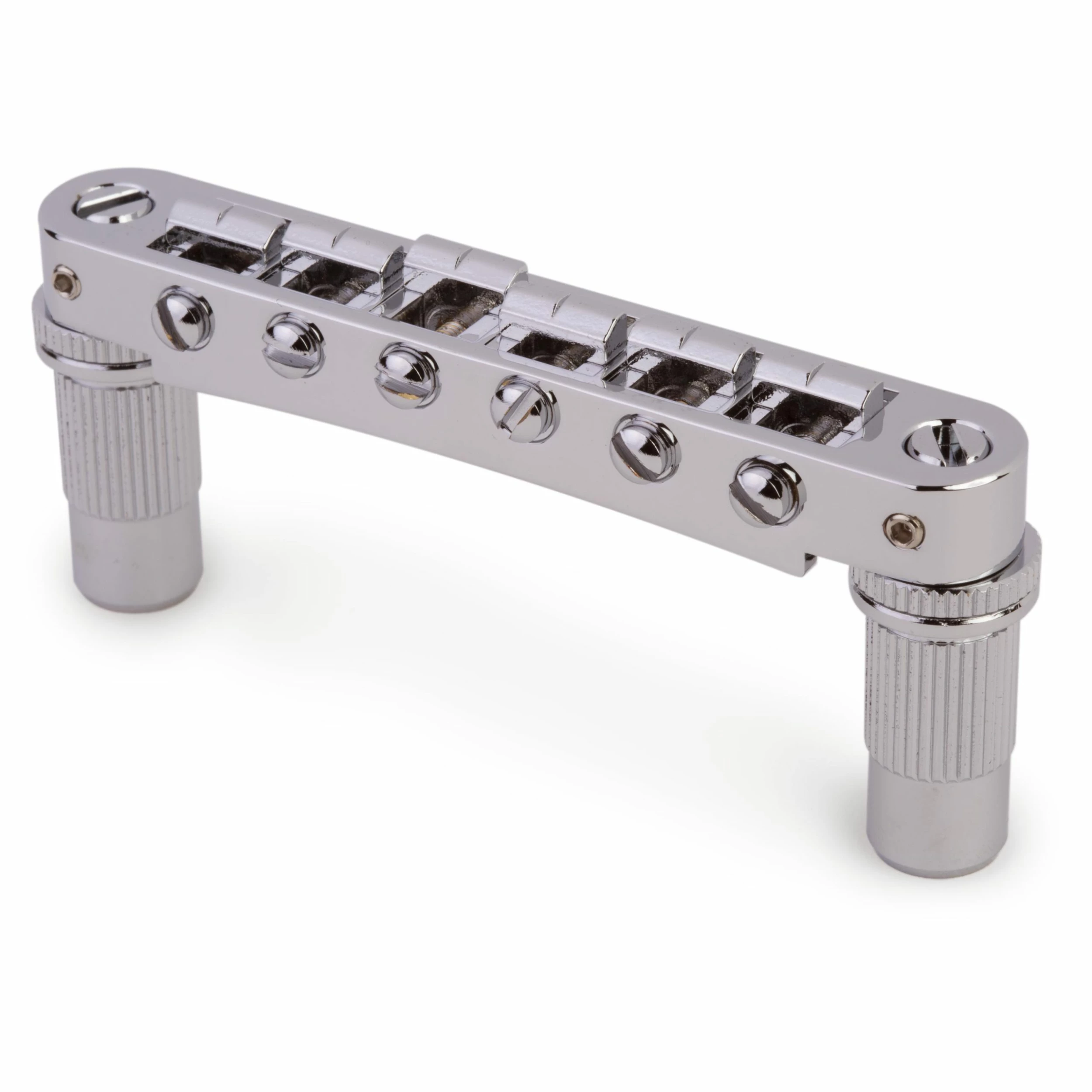 Upgrade your metric tune-o-matic with TonePros. One of the electric guitar’s easiest upgrades, TonePros’ locking functionality instantly improves any stock bridge system. For most guitars, it’s a drop in replacement. The TonePros TPFA is an aluminum bridge designed for “fat post”, metric-style guitars and comes notched for instant installation